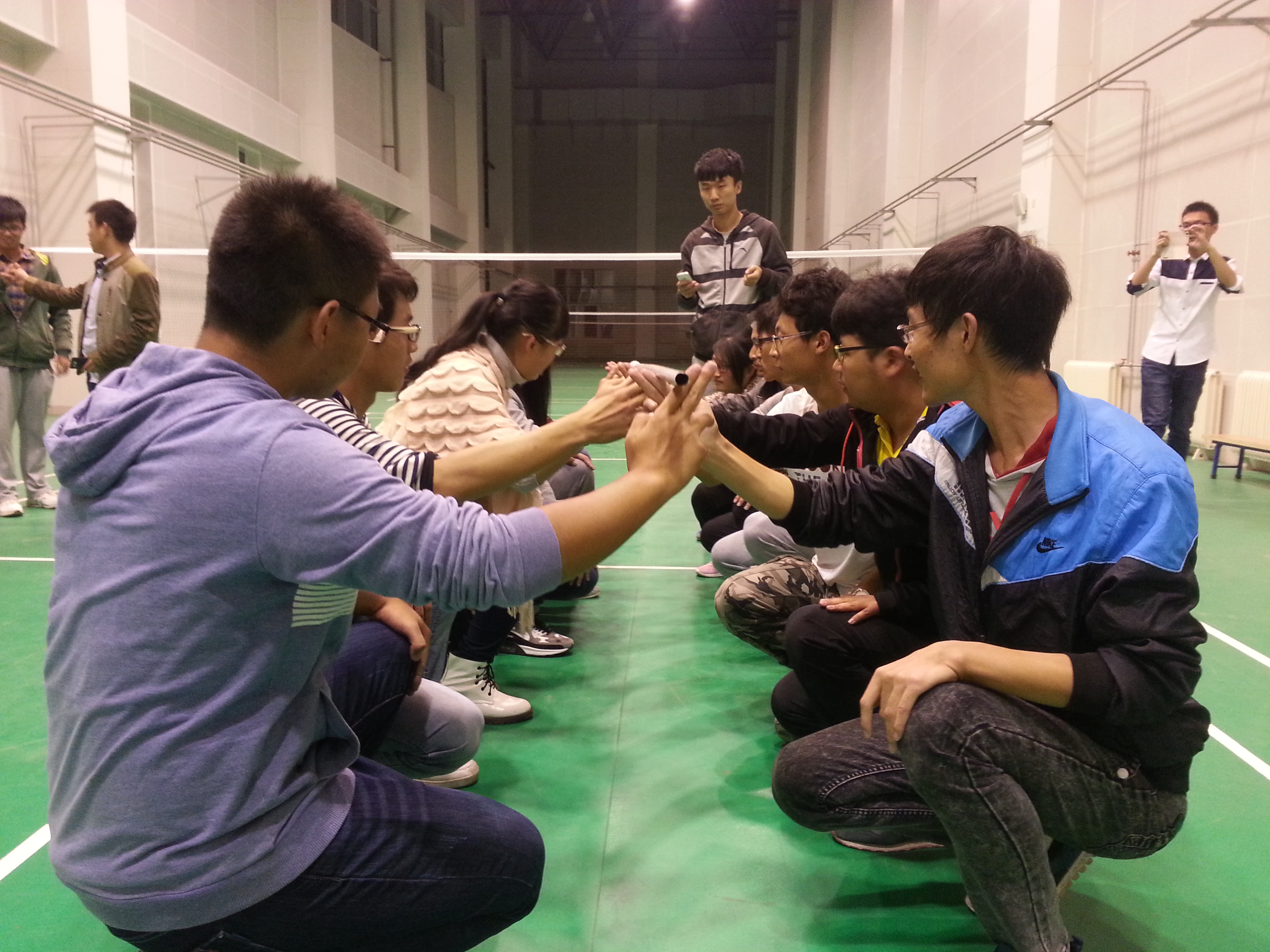 一块铁,可以锯融消损,也可以百炼成钢;一个团队,可以碌碌无为,也可以问鼎中原。为了提高团队协作能力,2014年10月12日晚上7时,机电公司党团工委2014级全体成员在中心体育馆一起互动参与了自己组织的拓展训练活动,党团工委副书记郝雨出席并组织活动。