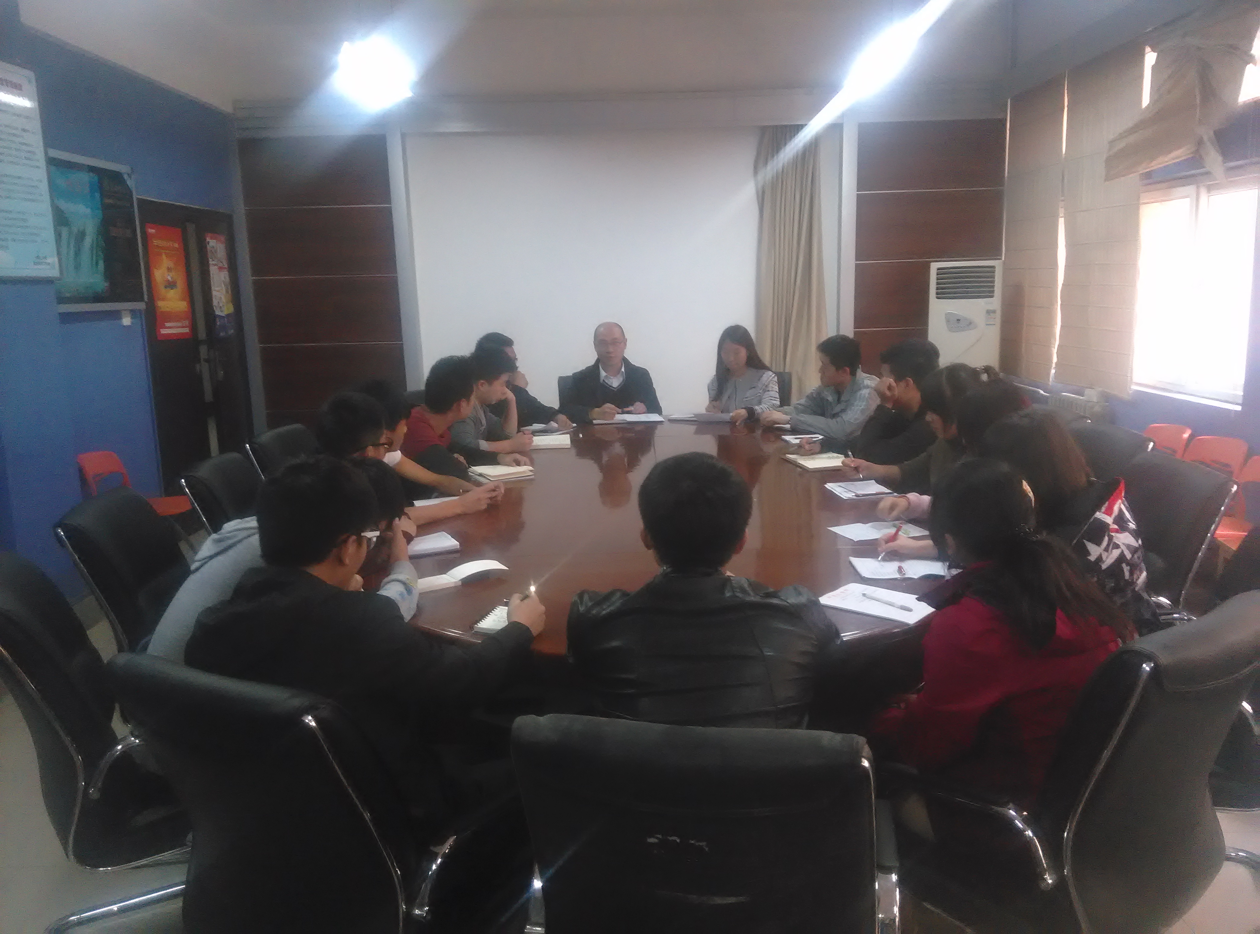 2014年10月13日,机电公司学工办及员工会在8号楼301会议室举行机电公司2014-2015年第一次员工干部培训会。机电公司党委副书记李士杰,14级辅导员张林静,及员工会部长级以上员工干部参加会议。员工会主席贾智钧主持本次会议。
