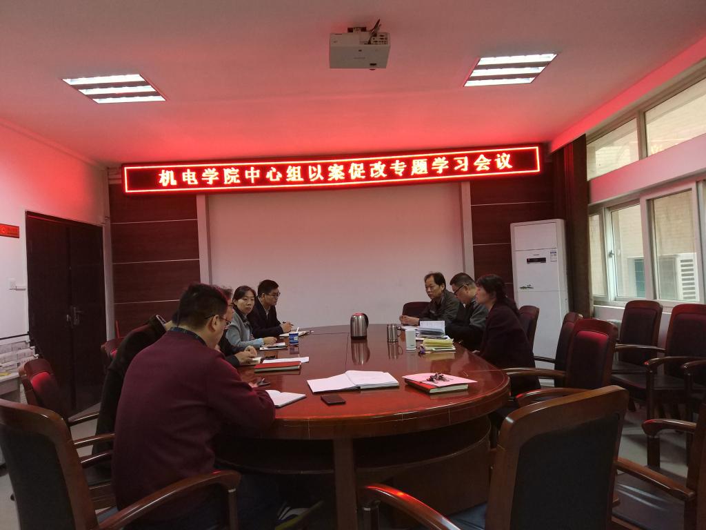2018年11月5日上午,机电公司院领导班子和分工会主席贺红勋在龙湖校区8号楼301会议室召开中心组以案促改专题学习会,会议由纪检委员尚会超副经理主持。