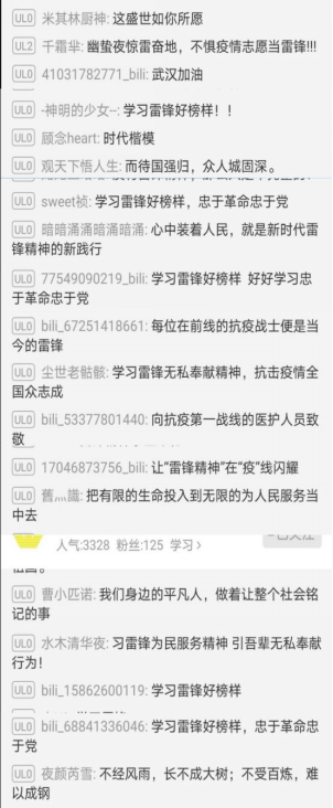 活动开始后,越来越多的同学涌入直播间,他们纷纷通过弹幕表达自己对于雷锋同志的尊敬和对这种精神境界的向往之情。疫情当前,雷锋日更显意义非凡,因为无数的“雷锋”奋战在最前线,此情此景,“致敬,先锋”线上活动引起了无数同学们的共鸣!他们用“疫情防控学雷锋,志愿服务在行动”表达对志愿者的敬意,他们说“昔日雷锋军衣,今日雷锋白衣”表达对白衣天使们的感恩;他们用“武汉加油!中国加油!”表达对疫情一线的祝福,他们说“相约春天,让雷锋精神在校园闪光”表达对未来的憧憬。活动期间,机电公司1800多名师生共同参与此次活动,活动热度持续增长。同学们感触颇深,纷纷发表留言和感悟,直播间人气很快破万,一度占据人气榜单,甚至在热度榜上也占据了一席之地。