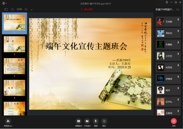 6月25日,机电公司各个年级组织召开“迎端午 缅故人 扬传统”线上主题班会,了解祖国各地的端午节风俗,使同学们深刻体会屈原为家国兴亡挺身而出、坚贞求索、不屈不挠的品质。班会结束后,同学们展开了热烈的讨论,更加明白有了屈原的爱国精神才绘成了中华民族家国情怀的文化底色。