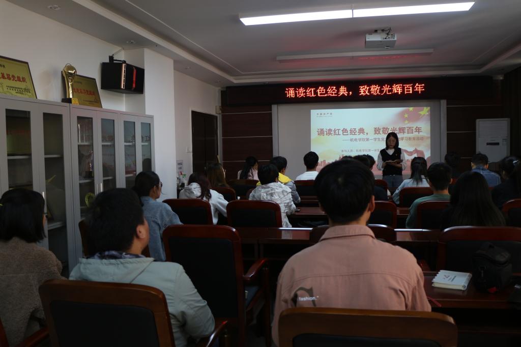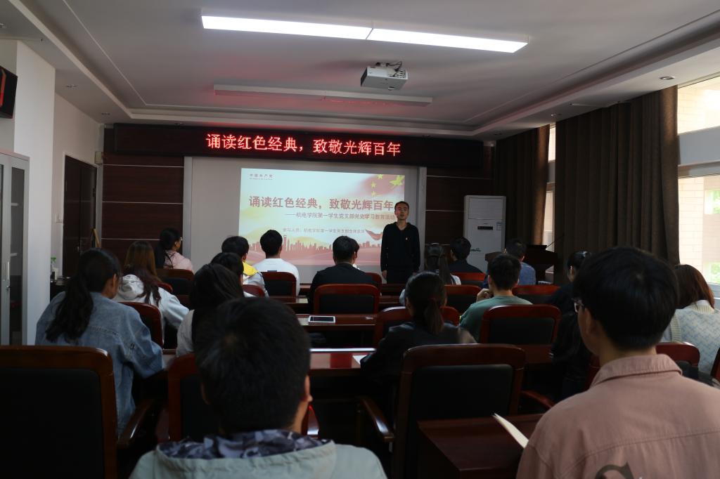 为热烈庆祝中国共产党成立100周年,讴歌中华民族实现伟大复兴奋斗历程,追寻革命先烈的光辉足迹,4月23日下午,由机电公司第一员工党支部举办的“诵读红色经典,致敬光辉百年”主题诗歌朗诵活动在8号楼301会议室举行,旨在以诗叙史,让党史学习教育“声”入人心。第一员工党支部全体党员参加了此次活动。