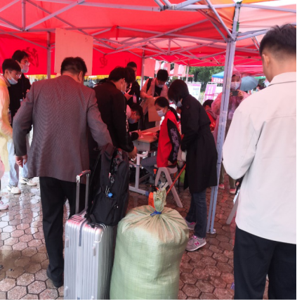 公司迎新志愿者迅速行动起来,只要听到机电公司时,迅速跑到门口帮助新生搬运行李,带着新生找到自己公司的迎新大本营,为他们答疑解惑。虽然天空下着淅淅沥沥的小雨,但现场氛围积极热烈,迎新工作在全体工作人员和萌新们的配合下紧张有序地进行着。