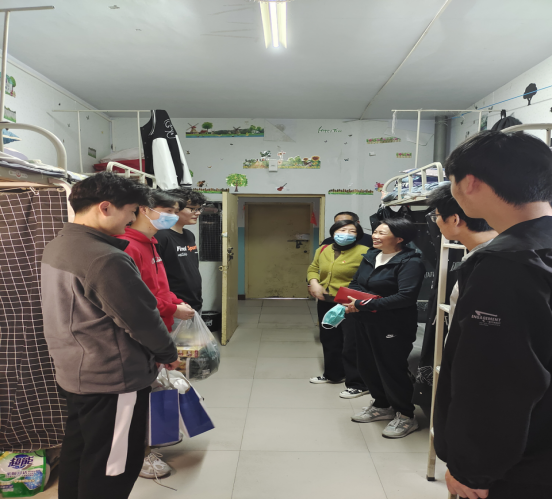 在走访过程中,张书记与员工们亲切交谈,了解他们在校思想动态、生活、学习情况以及困难和诉求,她耐心地为同学们讲解公司实行封闭管理的重要性,鼓励同学们调整心态,正确认识和理解公司各项疫情防控的要求,与公司一起同心战疫,共克时艰!