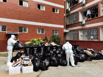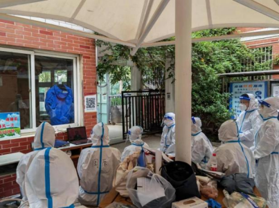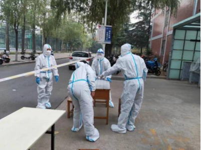 公司承担的是全校住宿员工最多的北苑7号宿舍楼的抗疫任务,该栋楼12个楼层305间宿舍,共有涉及5个公司的1713名员工,占目前在校员工总人数的近10%。按照网格化管理,安排了12位老师做相应的楼层长,这些老师们不分昼夜,每天一身大白几身汗水,他们楼上楼下接餐送餐、清运垃圾、组织核酸检测、递送快递上楼、巡楼、回复员工电话咨询、询医用药、协调外出就诊、到图书馆帮助取送落下的图书资料等等。在于永民教授带领下,核酸检测组3位同志为使员工能以最快的速度扫码做核酸,全程站立无休,有一天持续检测长达5个小时,他们全然不顾腰酸背痛、两腿僵硬,于永民教授年近花甲依然奋力坚持,毫不松懈。正如有的老师有感而发:“住公司,抗疫情,上网课,五点起,半夜睡,不得闲;穿防护,骑电车,测核酸,发盒饭,清垃圾,管消杀;拼劲足,对策好,效率高,机电人,老中青,齐奋进。”