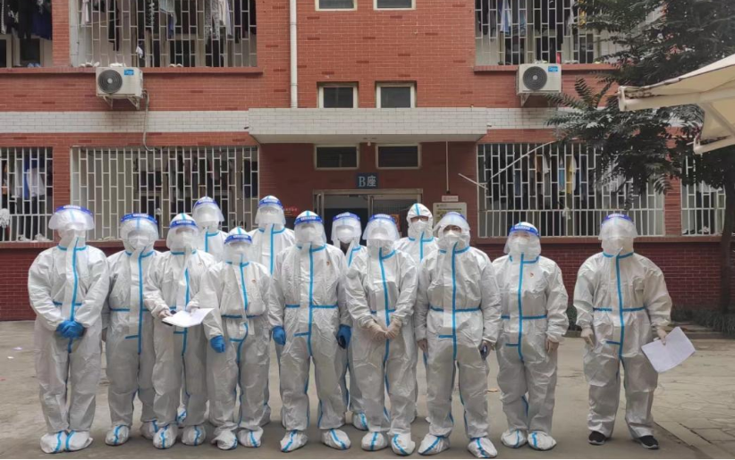 10月13日,疫情防控形势依然严峻复杂,集团抗疫面临前所未有的挑战。公司党委积极响应公司党委号召,组织开展“戴党员徽章,亮身份,作表率,战疫情,让党旗高高飘扬在抗疫一线”活动,动员符合进校条件的党员、教职工进校抗疫。全体领导班子以上率下,学工队伍义无反顾,广大党员、教师积极参加,迅速组建起了一支20人的机电抗疫志愿者队伍,勇做疫情下的“逆行者”,齐心协力守护校园,用行动和汗水诠释着机电人的责任和担当。志愿者队伍当中,他(她)们有的是两个孩子年龄尚小需照顾的母亲,有的是孩子年幼在家嗷嗷待哺的母亲,有的是孩子正在高中阶段关键时期需要做饭照顾的母亲,有的是家中尚有生病在床急需照顾病人的丈夫,有的是父母年事已高独自在家需要陪伴的儿子,有的是孩子需要辅导关爱的父亲,但他们都执意留下来打一场攻坚战。