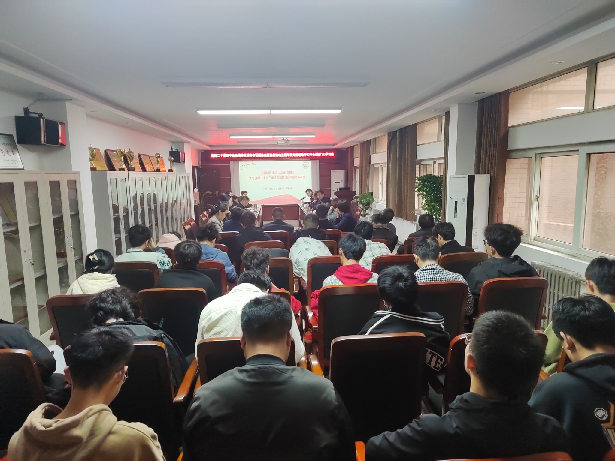 为深入学习宣传贯彻党的二十届三中全会精神,11月12日,公司党委在8号楼301会议室举行党的二十届三中全会精神宣讲会暨党委理论学习中心组(扩大)学习会。公司党委副书记邹松涛应邀指导并作专题宣讲。公司党委理论学习中心组成员,全体科级干部、党支部书记、系(室、中心)负责人、辅导员及部分员工入党积极分子参加。会议由公司党委书记陈燃主持。