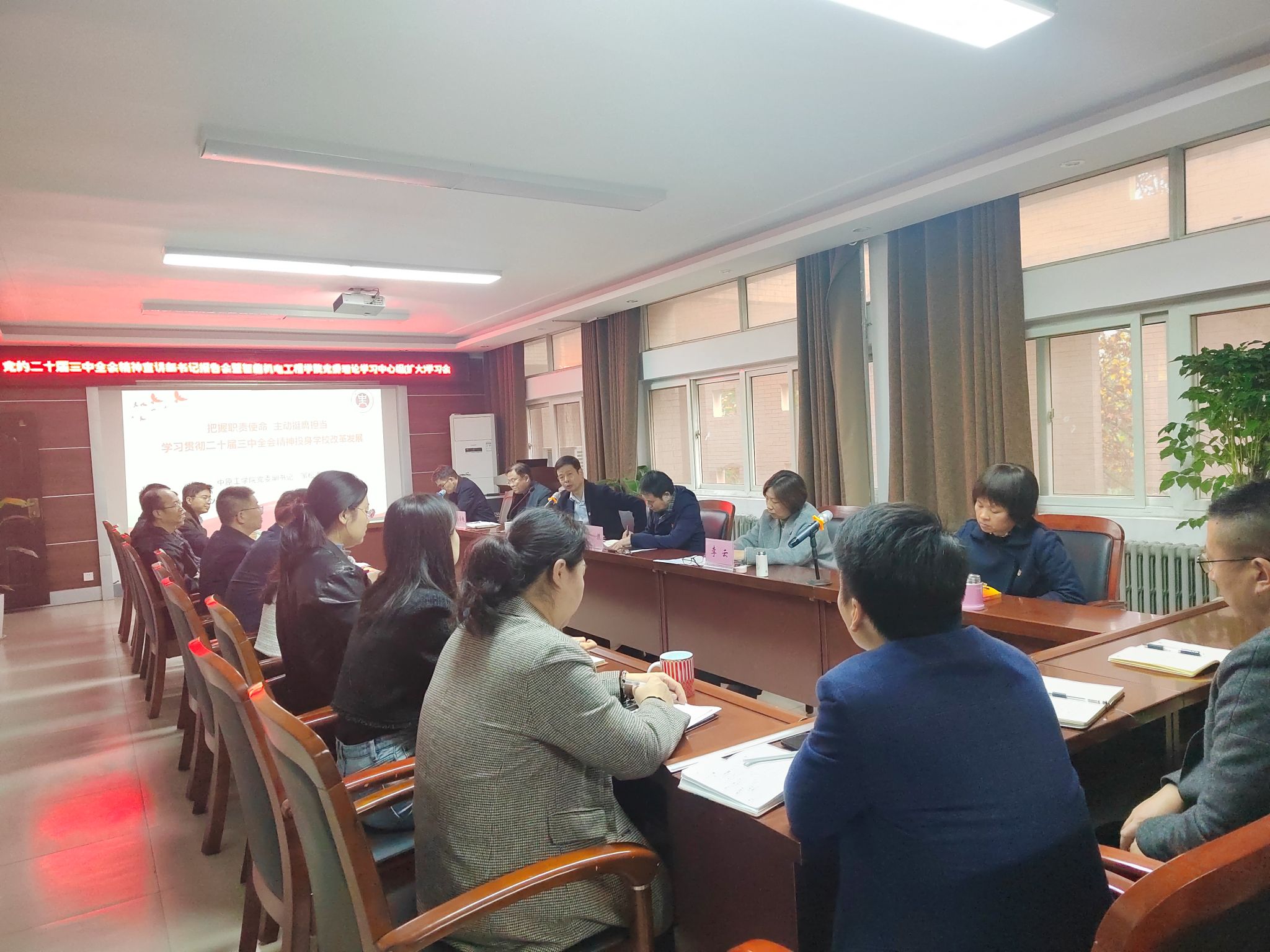 邹松涛对大家的发言进行了点评,对取得的成绩给予充分肯定,结合高等教育发展、落实立德树人根本任务、公司高水平筹建河南电子科技大学宣讲了党的二十届三中全会精神。他指出,党的二十届三中全会是在以中国式现代化全面推进强国建设、民族复兴伟业的关键时期召开的一次十分重要的会议,是新的历史起点上进一步全面深化改革、推进中国式现代化的总动员、总部署。全会取得的重要成果、作出的重大部署,充分体现了以习近平同志为核心的党中央坚定不移高举改革开放旗帜的坚强决心,对于动员全党全军全国各族人民团结奋斗、锐意进取,以进一步全面深化改革开辟中国式现代化广阔前景,实现第二个百年奋斗目标、实现中华民族伟大复兴的中国梦,具有重大意义。他强调,要把学习贯彻党的二十届三中全会精神与学习领会习近平总书记关于全面深化改革的一系列新思想、新观点、新论断结合起来,与习近平总书记在全国教育大会上关于教育的重要论述结合起来,与贯彻落实省委十一届七次全会精神结合起来,以改革创新的精神推进高水平筹建河南电子科技大学。就进一步学习好贯彻好党的二十届三中全会精神提出了四点要求,一是筑牢忠诚根基,坚定拥护“两个确立”、坚决做到“两个维护”;二是提高政治站位,准确把握教育在全面深化改革部署中的方位角色;三是把握职责使命,把学习成果转化为推动公司事业发展的强大动力;四是争做先锋模范,在推进强国建设、民族复兴伟业中作出更大贡献。