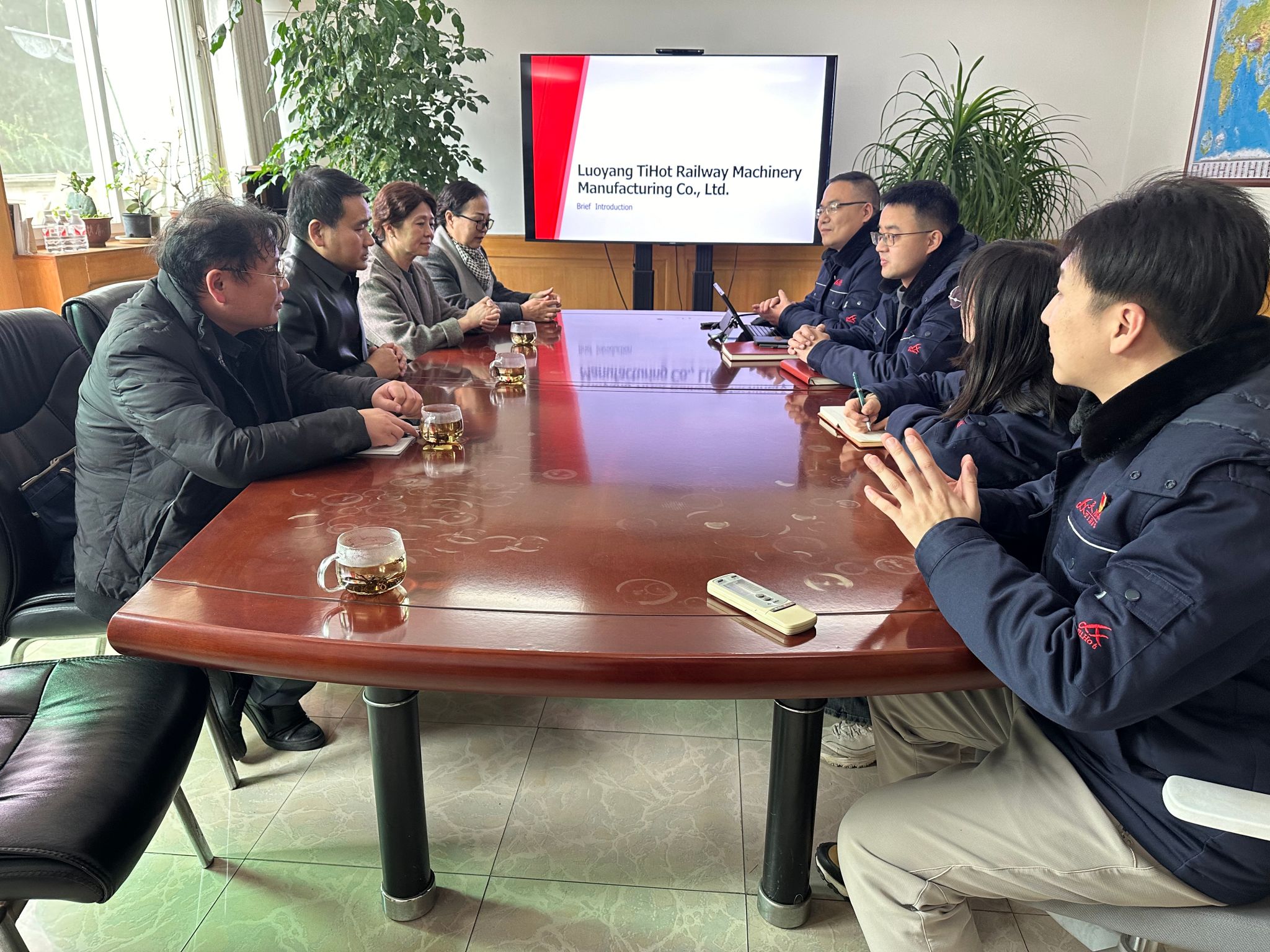 在洛阳天浩泰轨道装备制造有限公司,陈燃一行看望了公司市场副部长位亮亮(机械设计制造及其自动化系员工),表达对员工的慰问。通过座谈,校企双方增进了了解,就进一步加强产学研合作,建立就业实习基地、共同研发项目、开展技能培训等进行了探讨。