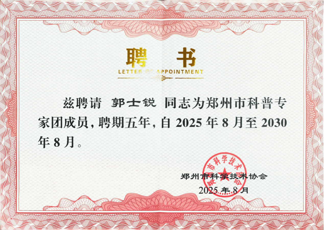 根据《关于开展郑州市科普专家推荐工作的通知》要求(郑科协字〔2022〕24号),经各区县(市)科协、全市学会、各企事业科协及有关单位推荐,市科协组织专家评审和认真研究,365在线体育投注官网365在线体育投注官网教师党支部书记郭士锐教授入选“郑州市科普专家”。
