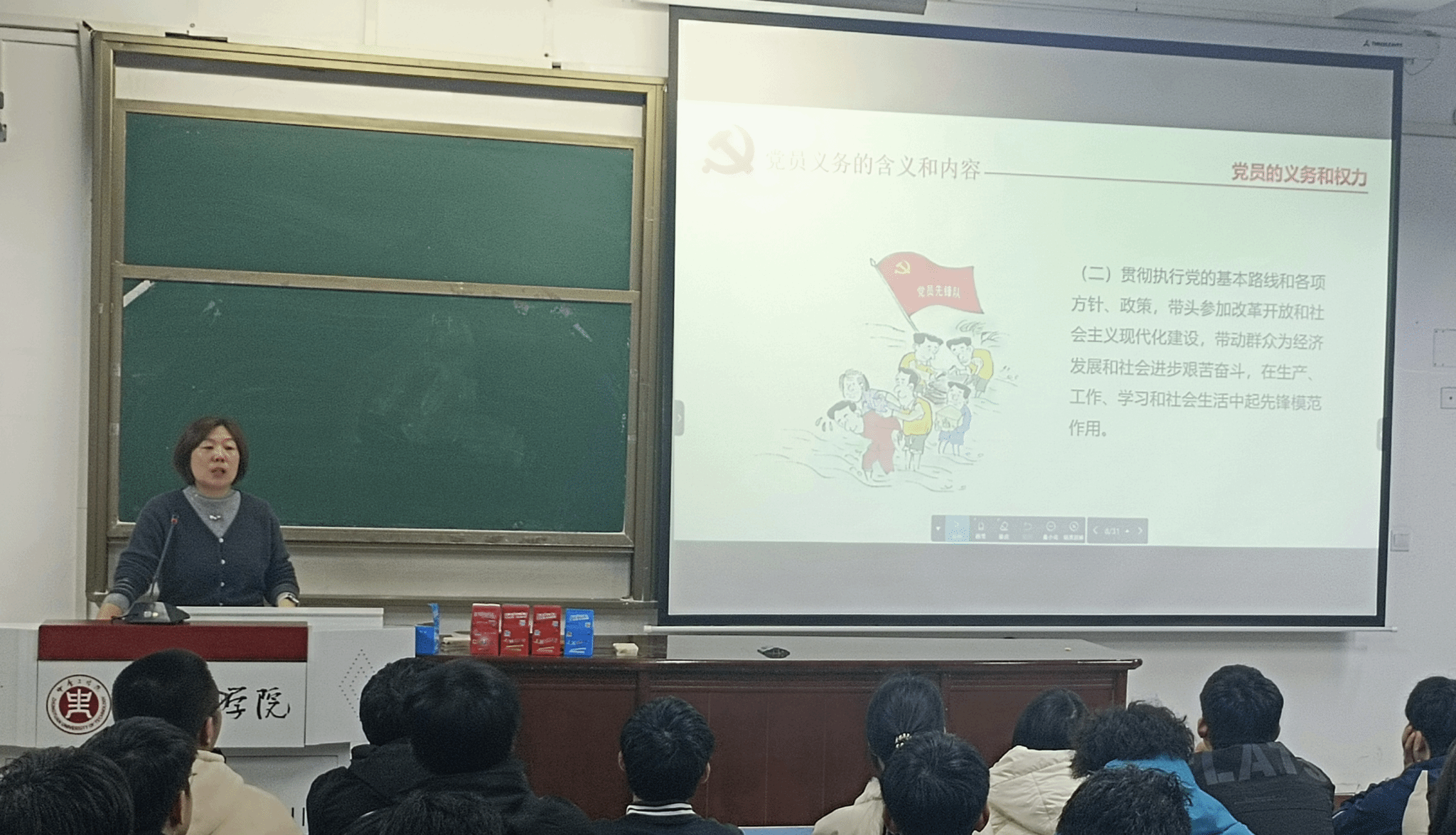 党课伊始,李云以一段记录脱贫攻坚一线党员干部扎根基层、攻坚克难的纪实短片为切入点,围绕“怎样才能符合党员条件,如何正确履行党员义务、行使党员权利”这一主题,系统讲解了党员的基本条件、党员的义务和权利等内容。她强调,全体学员要始终牢记党的根本宗旨,以“刀刃向内”的自觉不断检视入党动机,积极创造入党条件;要准确把握党员权利与义务的辩证统一关系,做到知行合一。她勉励大家,要自觉用习近平新时代中国特色社会主义思想武装头脑,主动向优秀党员看齐,牢记初心使命,勇担时代重任,将个人成长融入国家发展大局,在强国建设、民族复兴的伟大实践中贡献智慧和力量。