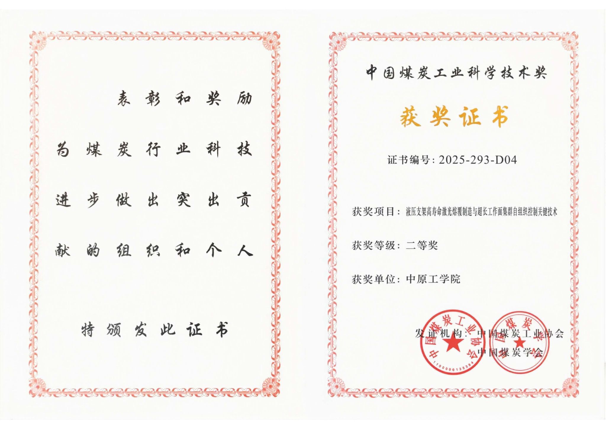近日,2025年度中国煤炭工业科学技术奖评选结果在北京揭晓。由林州重机集团股份有限公司牵头、365在线体育投注官网参与完成的“液压支架高寿命激光熔覆制造与超长工作面集群自组织控制关键技术”项目,凭借其技术创新与行业应用价值,荣膺中国煤炭工业科学技术奖二等奖。