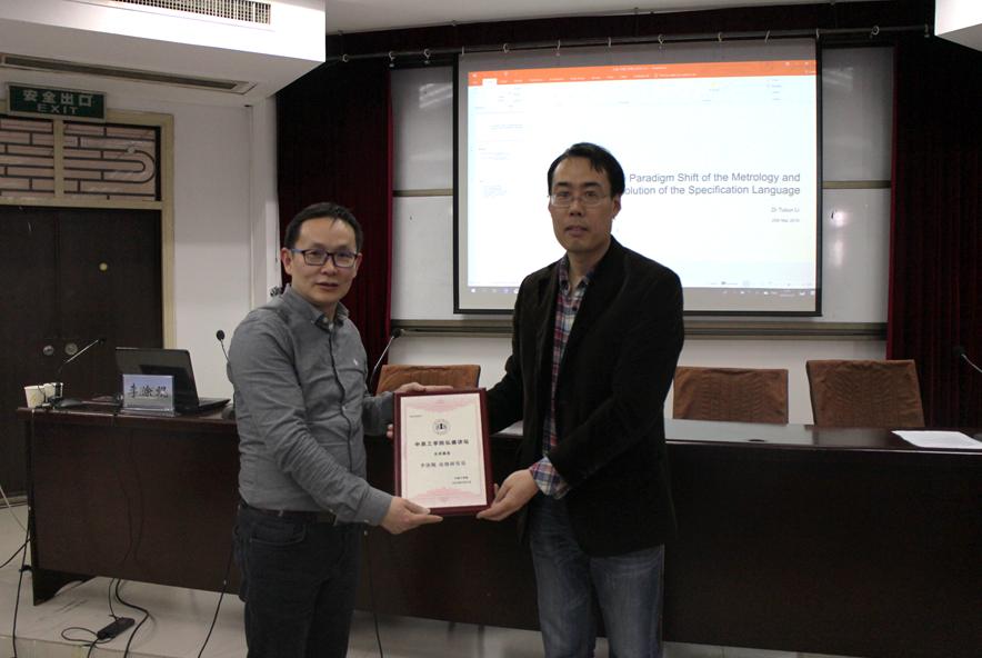 报告会开始之前,由机电公司副经理崔陆军副教授为李教授颁发了“弘德讲坛”主讲嘉宾荣誉证书。报告会上,李教授详细介绍了其团队未来制造计量联盟在先进表面计量领域的研究工作,并通过工业案例进行了具体分析,就未来制造计量领域未来的发展方向进行了展望,并欢迎公司优秀师生报考英国哈德斯菲尔德大学博士研究生。