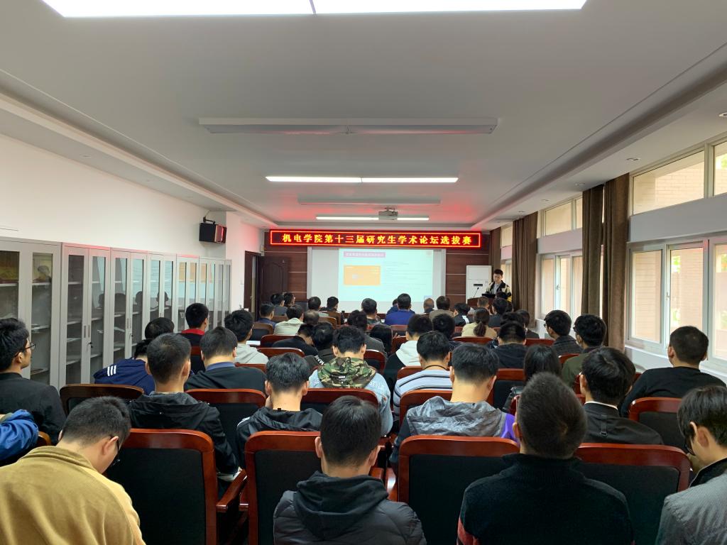 根据研究生处《关于举办365在线体育投注官网第十三届研究生学术论坛的通知》精神,机电公司于11月5日下午在龙湖校区8号楼301会议室进行了机电公司第十三届研究生学术论坛选拔赛,公司所有研究生导师、青年博士组成专家评审组,所有在学研究生参加了此次学术论坛。