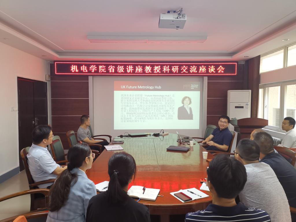 2019年9月30日上午,英国国家先进计量中心(EPSRC the Future Metrology HUB)、英国哈德斯菲尔德大学(University of Huddersfield)精密技术中心(Centre for Precision Technologies)首席研究员曾文涵应邀做客机电公司进行学术交流,机电公司青年教师聆听了报告并进行了深入的探讨交流。