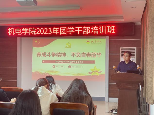 为养成斗争精神,增强斗争本领,523日,机电公司2023年团学干部培训班第七次培训在8号教学楼301教室举行。党委书记陈燃授课