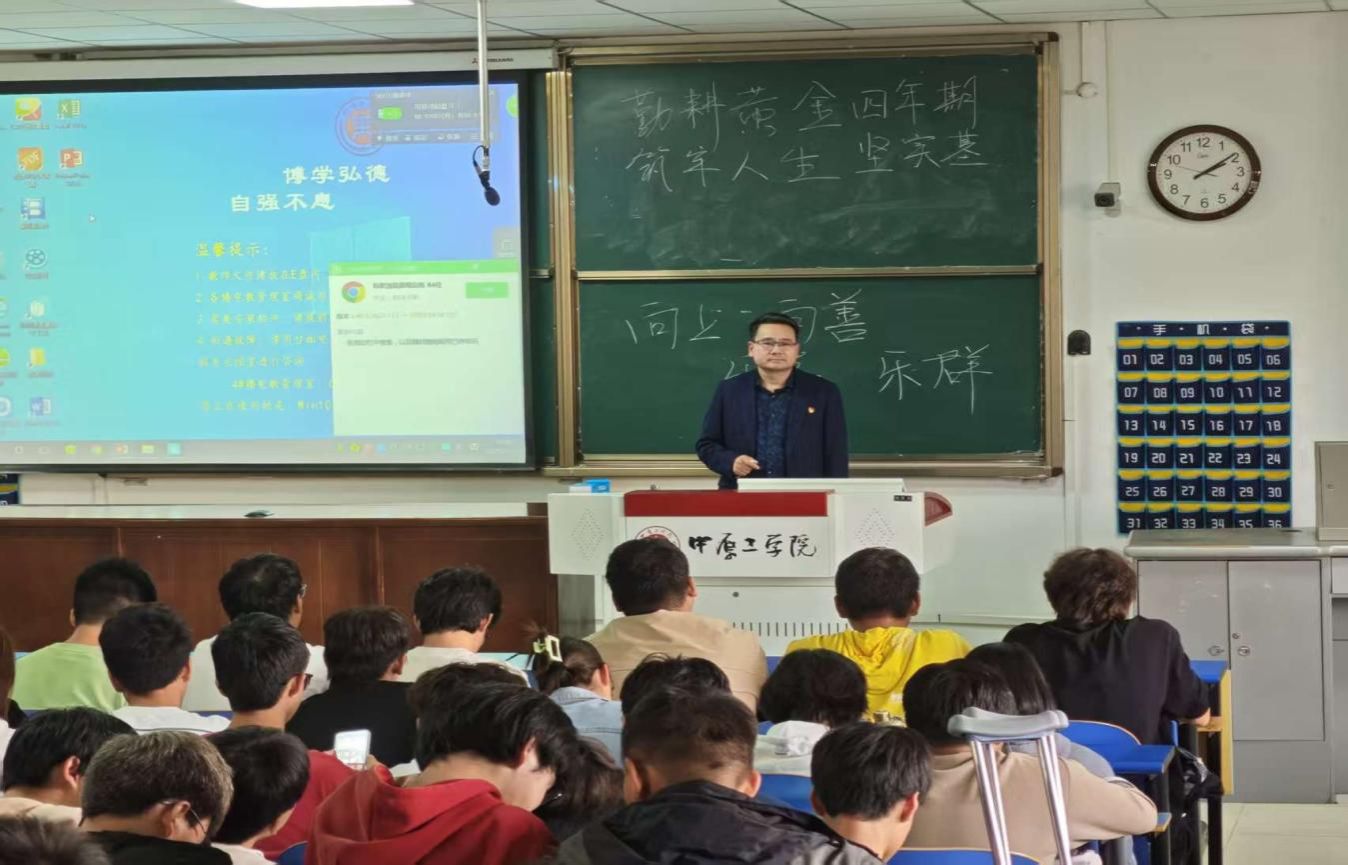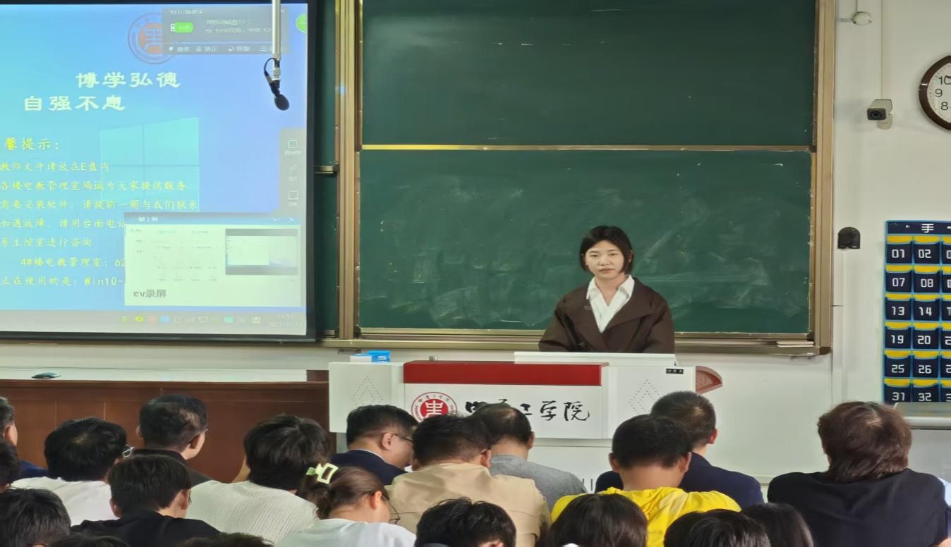 教师代表郭士锐“专业学习与个人成长”主题分享经验并向新生提出三点建议:一是重塑学习模式,夯实专业根基;二是打破课程壁垒,促进融会贯通;三是树立工程思维,坚持学以致用。