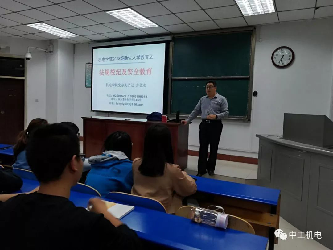 为了使大一新生更好的适应大学新生活,更加详细的认知公司,明确校规校纪,10月11日晚上,机电公司党总支书记方敬永、党总支副书记李云、副经理尚会超在自习教室对新生展开了入学教育。