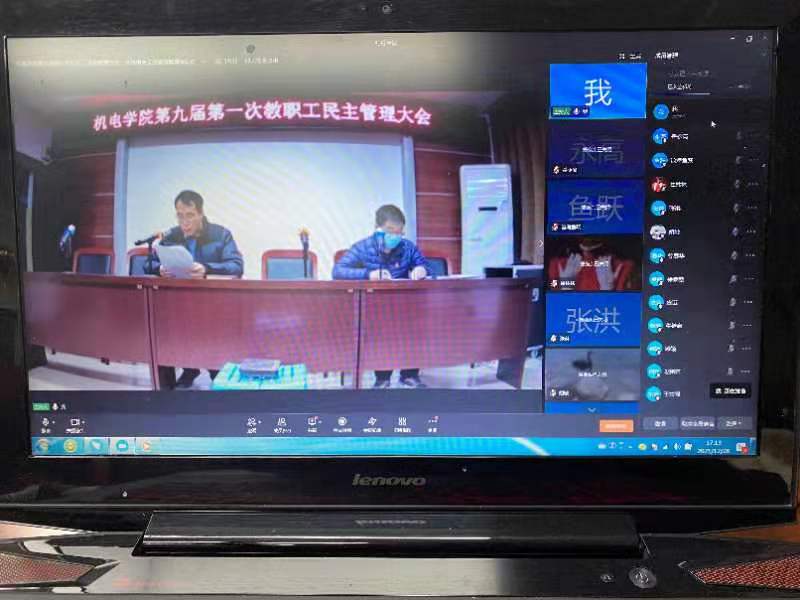 2021年12月28日下午,机电公司第九届第一次教职工民主管理大会成功召开,按照疫情防控要求,结合公司具体工作安排,会议采取线上+线下相结合形式召开,线下会议地点:8号楼301会议室;线上通过钉钉平台同步进行。公司教职工90余人参加大会。会议由工会主席邢军阳主持。