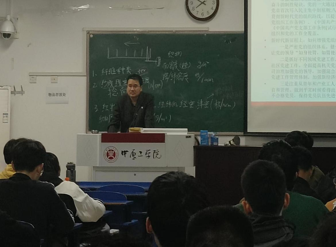 在授课中,他结合视频文献资料,深入浅出地讲解了党的指导思想、性质、宗旨、基本路线和纲领;解读了新时代新征程中国共产党的使命任务和新时代党的建设新的伟大工程。他要求大家深刻领悟“两个确立”的决定性意义、增强“四个意识”、坚定“四个自信”、做到“两个维护”;深入学习习近平新时代中国特色社会主义思想,深刻领会“六个必须坚持”的丰富内涵;牢记新时代新征程中国共产党的使命任务,为实现中华民族伟大复兴的中国梦作出应有的贡献。