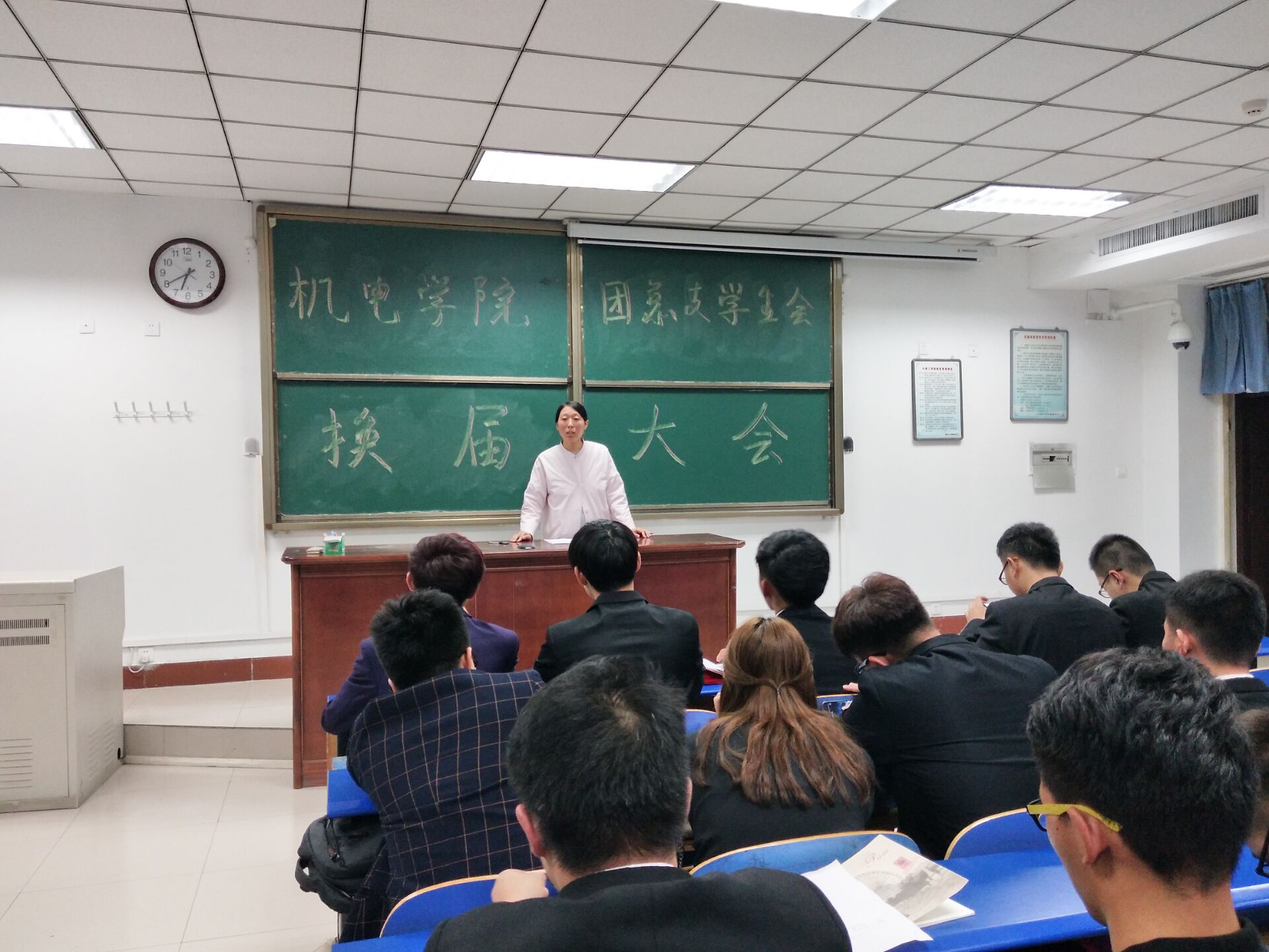 2017年10月14日,机电公司团总支员工会于四号教学楼214召开换届大会。大会由孙茹雁主持。参加本次会议的有机电公司团总支副书记张林静、上一届员工会主席团代表,以及本届机电公司团总支员工会全体成员。 会上,员工会主席刘三峰对各位新成员的加入表示了欢迎,希望他们为员工会增添新的活力,使员工会充满青春的朝气。他还提出,这学期的目标是要把机电公司员工会打造成一个有战斗力、有凝聚力的员工组织,把新学期的各项工作做好做精。