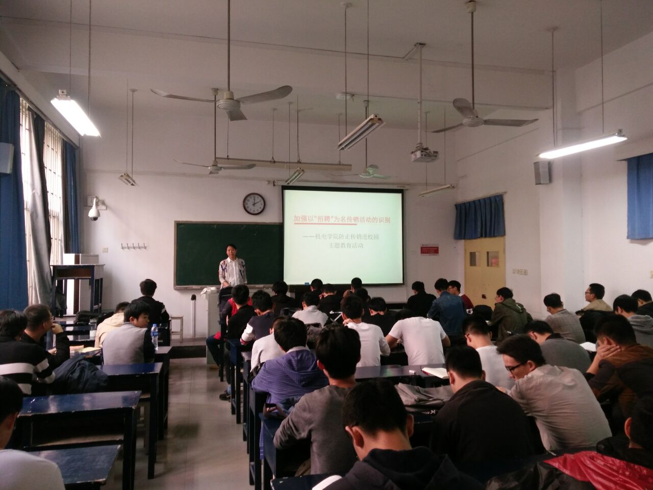 为了促进了机电公司“员工综合素质提升工程”和“班级建设工程”两个工程活动有效开展,使广老员工树立正确的人生观、价值观、就业观,提高识别能力,增强防范意识,维护校园稳定,10月19日下午,机电公司于11号教学楼123教室开展了“加强以‘招聘’为名传销活动识别”的相关主题教育活动,毕业班辅导员张林静老师主持了本次活动。该活动是公司开展防止传销进校园主题活动之一,也是公司毕业生就业指导和服务的重要内容。 张老师表示,目前传销活动已经向高校渗透,讲述了当前传销活动的复杂性、欺骗性,传销活动进入校园会严重损害和影响员工的身心健康和校园环境的稳定。张老师列举了几个以“以招聘、介绍工作”为名的校园传销活动案例,一个个生动真实的案例,给了同学们深刻的警醒。通过让大家了解打击传销的法律法规,引导员工自觉做到知法、懂法、守法,提高对传销的免疫力,确保就业安全。会后,大家纷纷表示,通过这次宣传教育活动,了解了校园传销的本质和危害,今后一定会加强自我防范意识,远离传销。