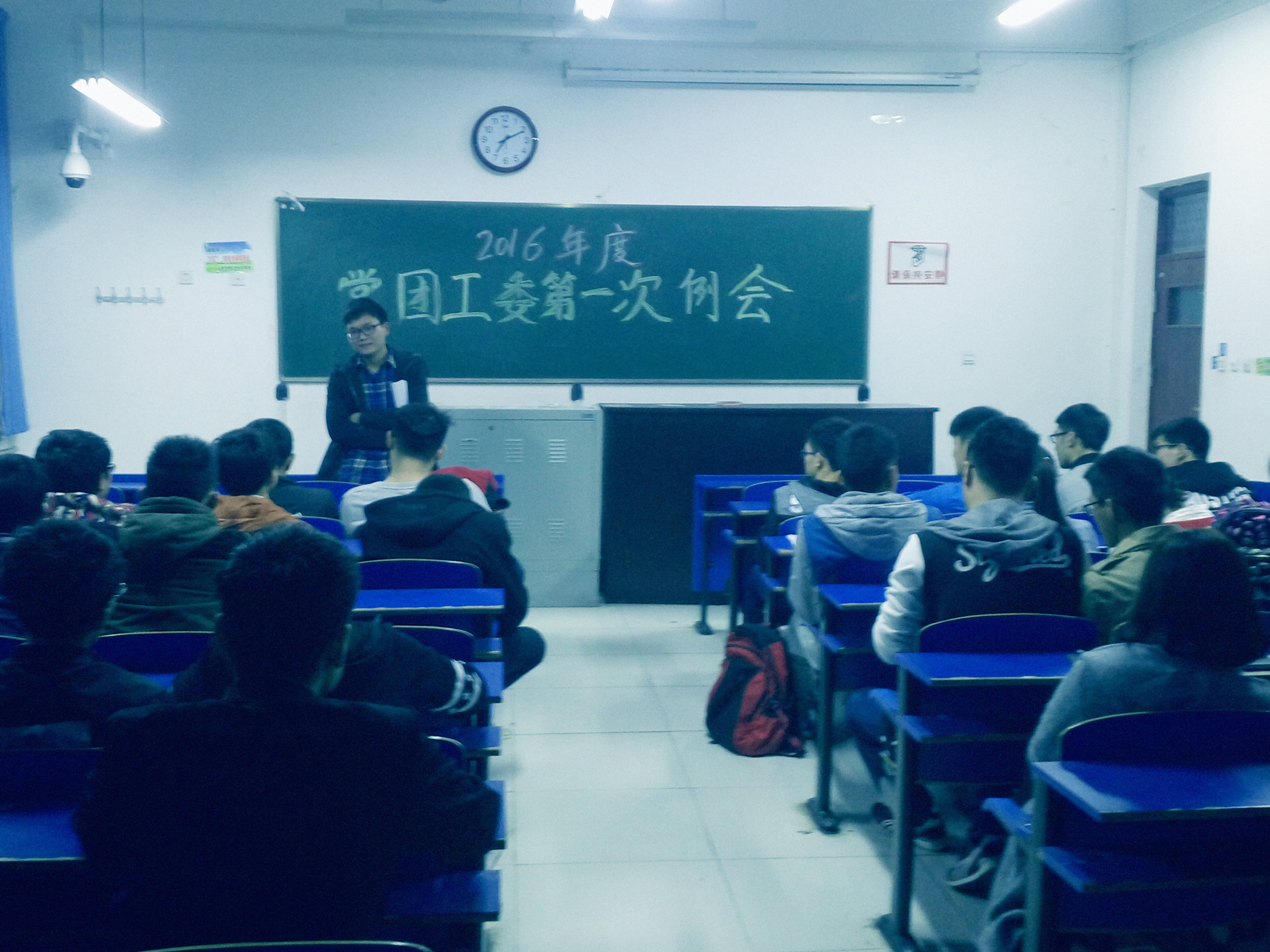 2016年3月5日晚18:30分,机电公司党团工委在2号组团楼107教室召开新年后第一次例会,出席会议者为党团工委书记吴迪,副书记张军海和各部部长以及各部成员。