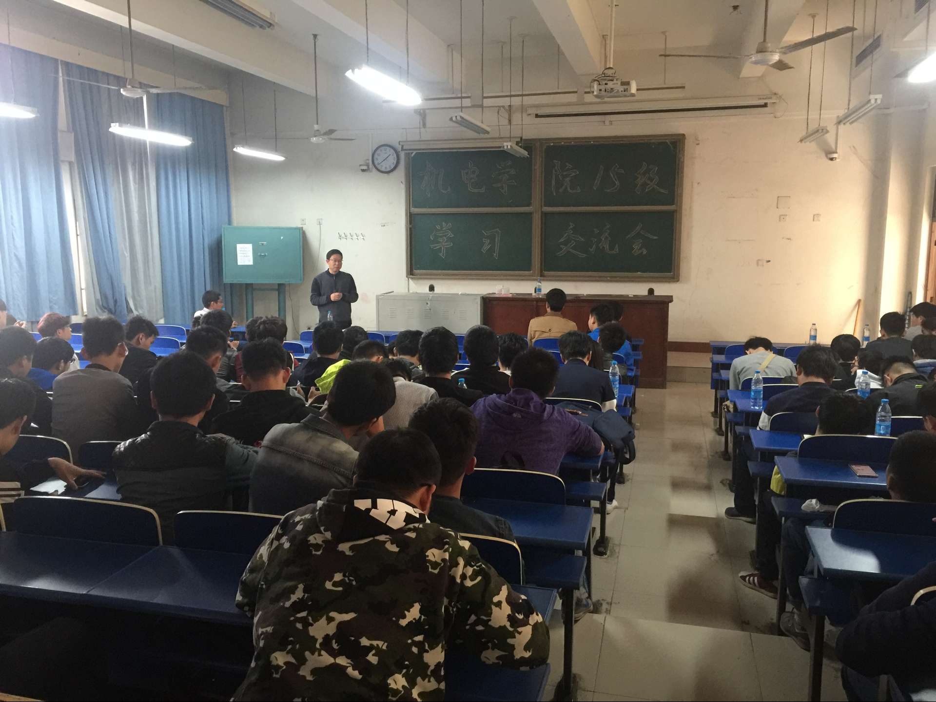 2016年4月1日中午12:30分,机电公司在3号教学楼105教室召开学习交流大会,出席会议的有机电公司书记杨向宇、15级辅导员刘海鹏,4位优秀高年级员工代表,及部分15级新生,会议由刘老师主持。