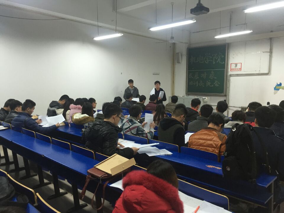 2015年12月1日12:30分,机电公司党团支部在11号楼322召开党员发展对象大会。机电公司党团工委副书记张军海,组织部部长李明及若干发现对象出席本次大会,由组织部李明主持。