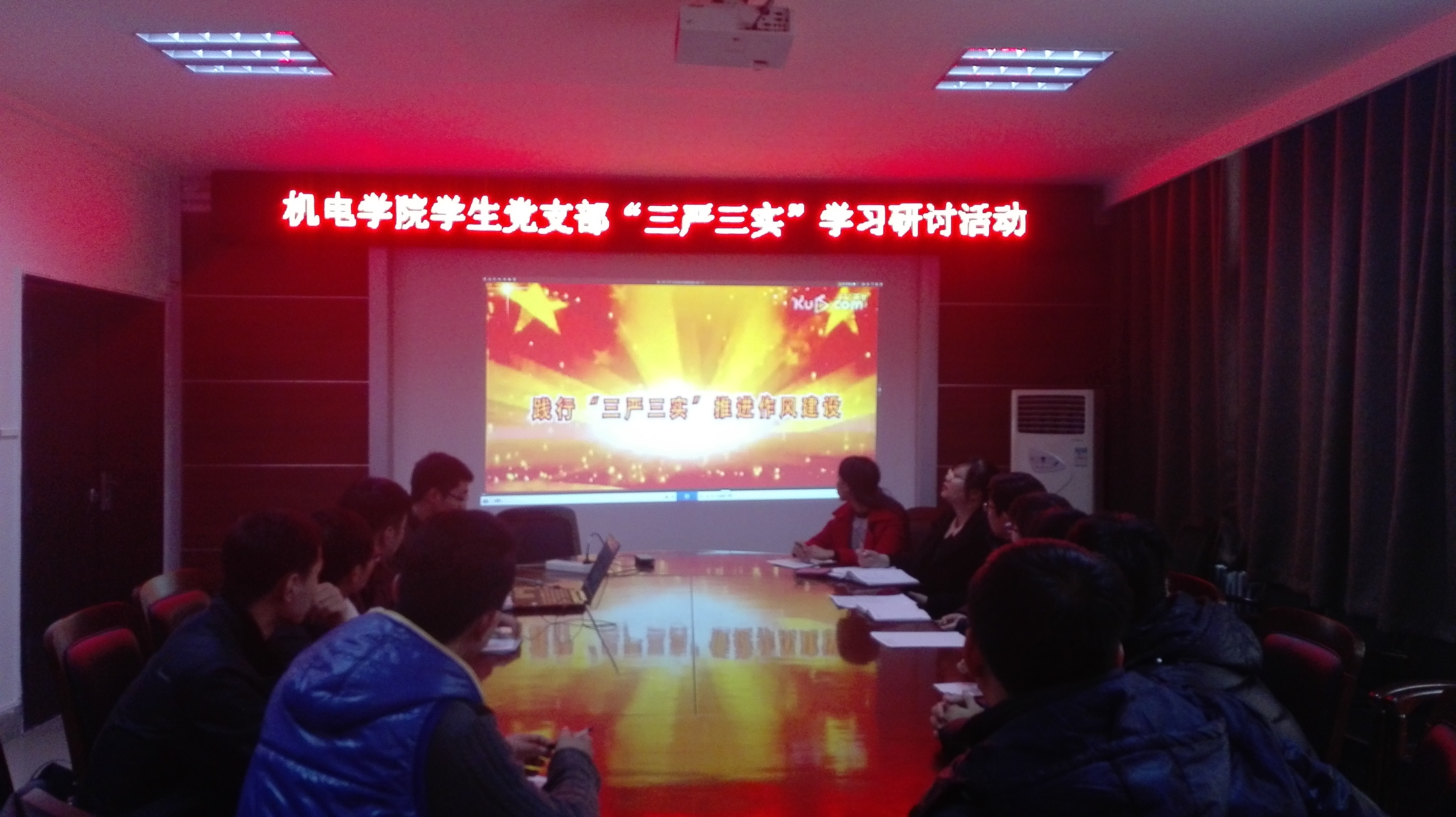 会议初始,杨书记宣布大会开始,首先杨书记带领各党员学习“三严三实”的主要内容包括:“严以修身、严以用权、严以律己,又谋事要实、创业要实、做人要实”。同时杨书记强调:一、员工党员要以身作则,时刻遵守党的准则;二、切实贯彻“三严三实”思想是当下的目标。随后,又放送一段视频,深入学习党的思想。