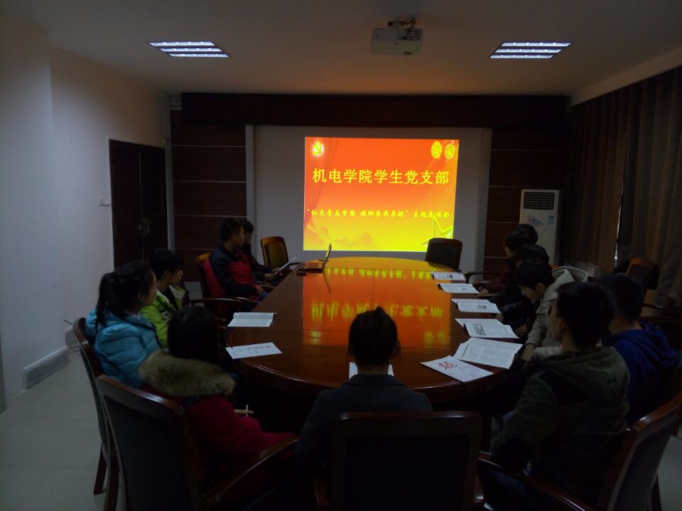 11月20日,机电公司党团工委组织的“红色青春梦想,旗帜为我导航”座谈会在八号楼会议室举行,参加会议的人员为院员工党支部书记张林静、员工党员代表,会议由员工党员代表主持。
