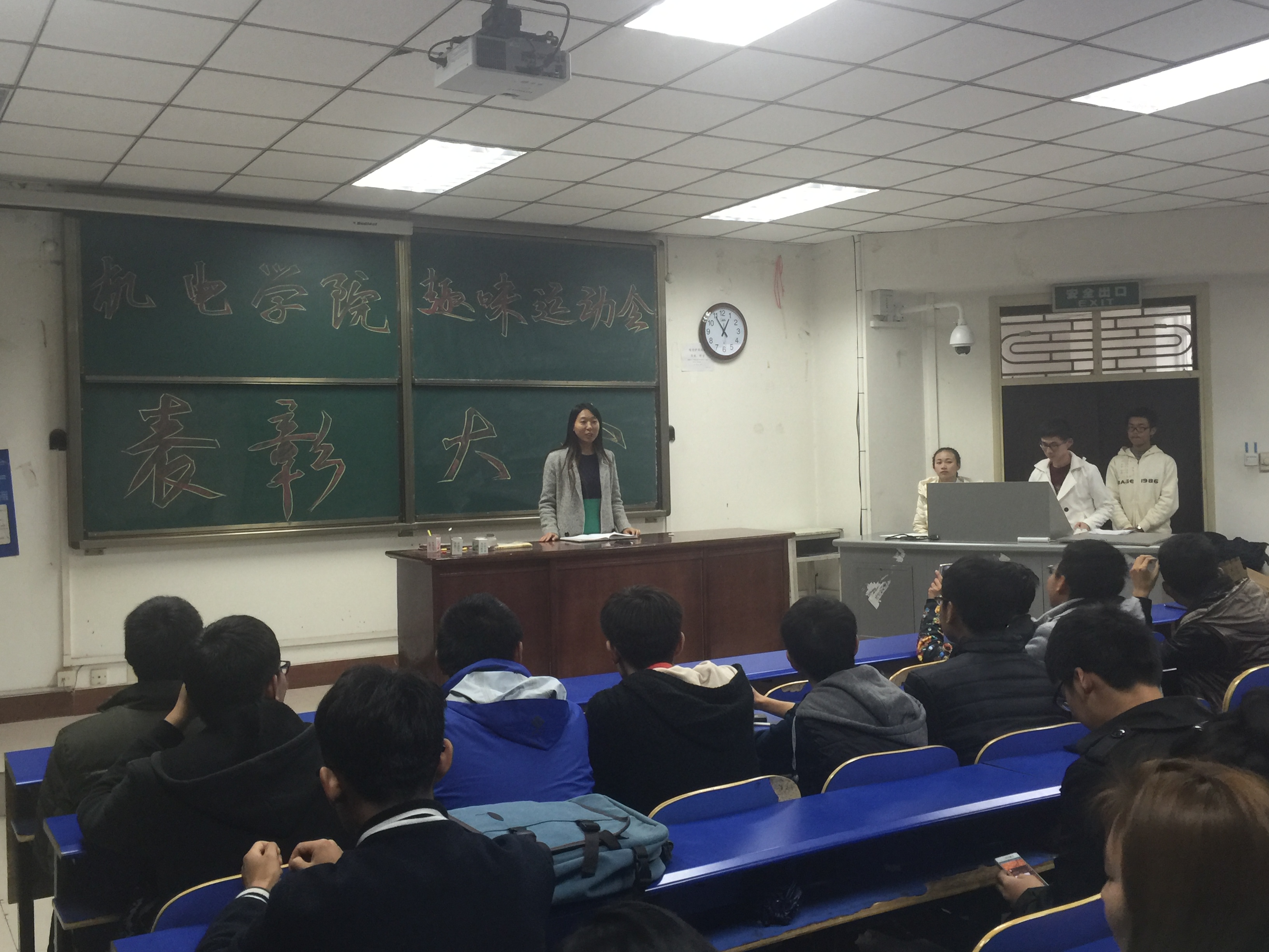 2015年11月6日正午,机电公司在4#301召开了趣味运动会表彰大会。此次大会由机电公司团总支书记张林静老师、学工办主任魏茜老师、辅导员刘海鹏老师、员工会成员及所有参赛运动员参与。