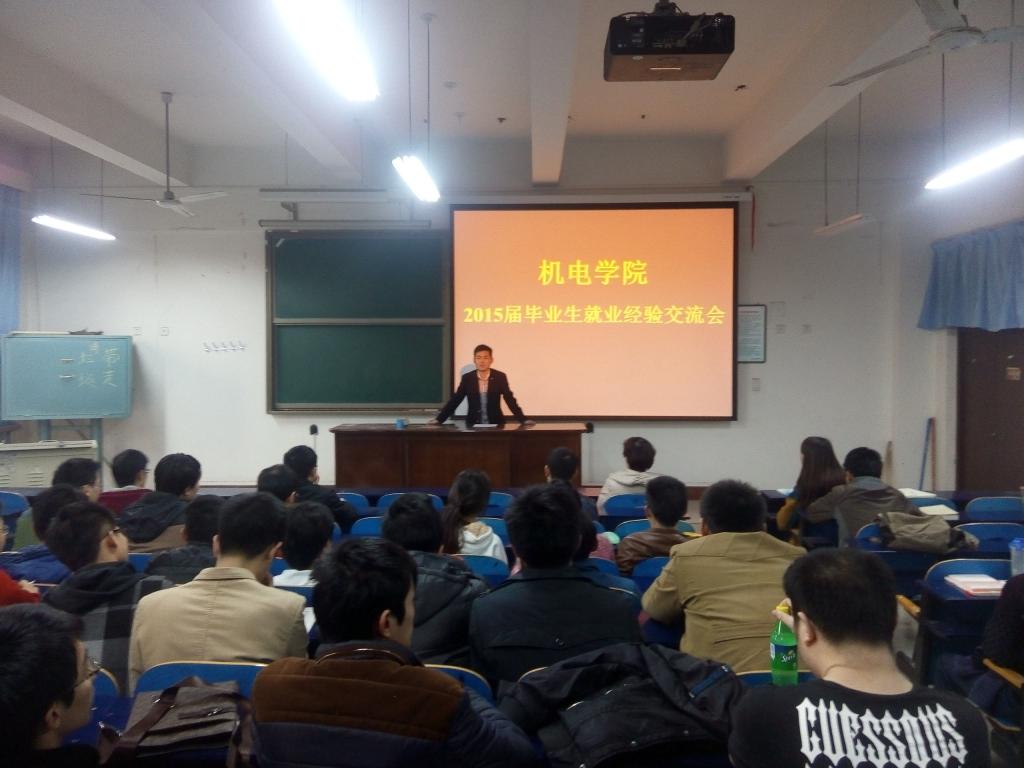 2014年11月21日下午16:00,机电公司2015届毕业生就业经验交流会在3号楼437召开。辅导员张林静老师、王芳老师和2015届毕业生参加了本次会议。