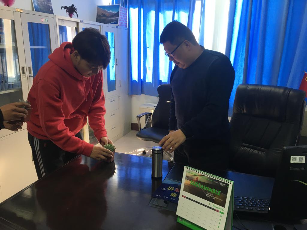 随后,员工会举办了“绿色生活,有你有我”的活动,为参与活动的同学发放了精美的小盆栽,旨在提高同学们的珍惜绿色的责任心和生态意识,以达到为公司增添绿色、美化环境的目的。