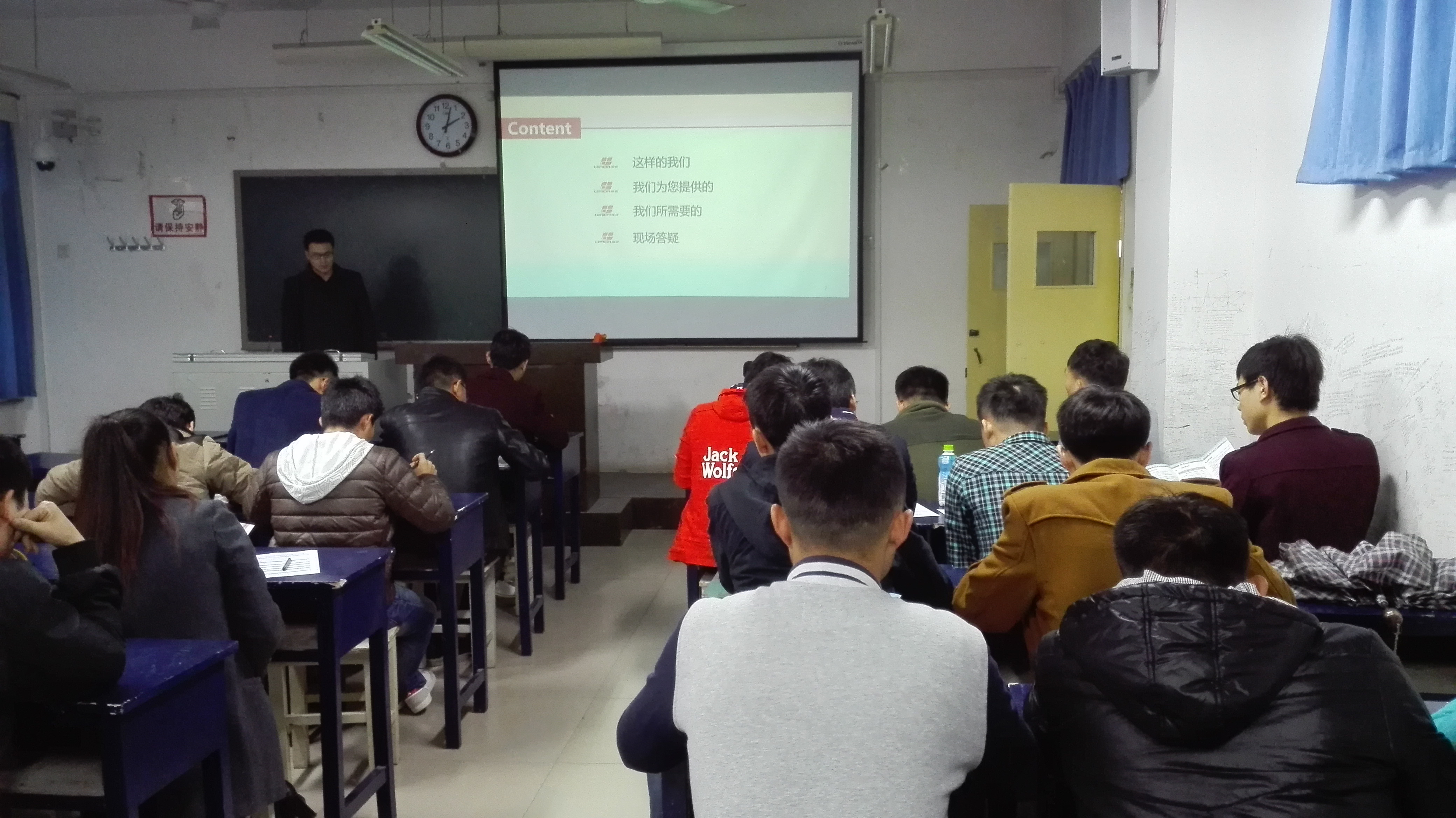 首先,招聘单位通过播放宣传片、PPT展示、面对面交流等方式向同学们介绍公司的概况、职业发展方向、人员需求以及选择该单位的原因等。之后,公司代表对于同学们提出的问题一一解答,并介绍了公司在实习期考核结束后,会选择一些人参加研究生培训班。最后,与会同学填写并投递了简历,在筛选后进行了笔试、面试环节。