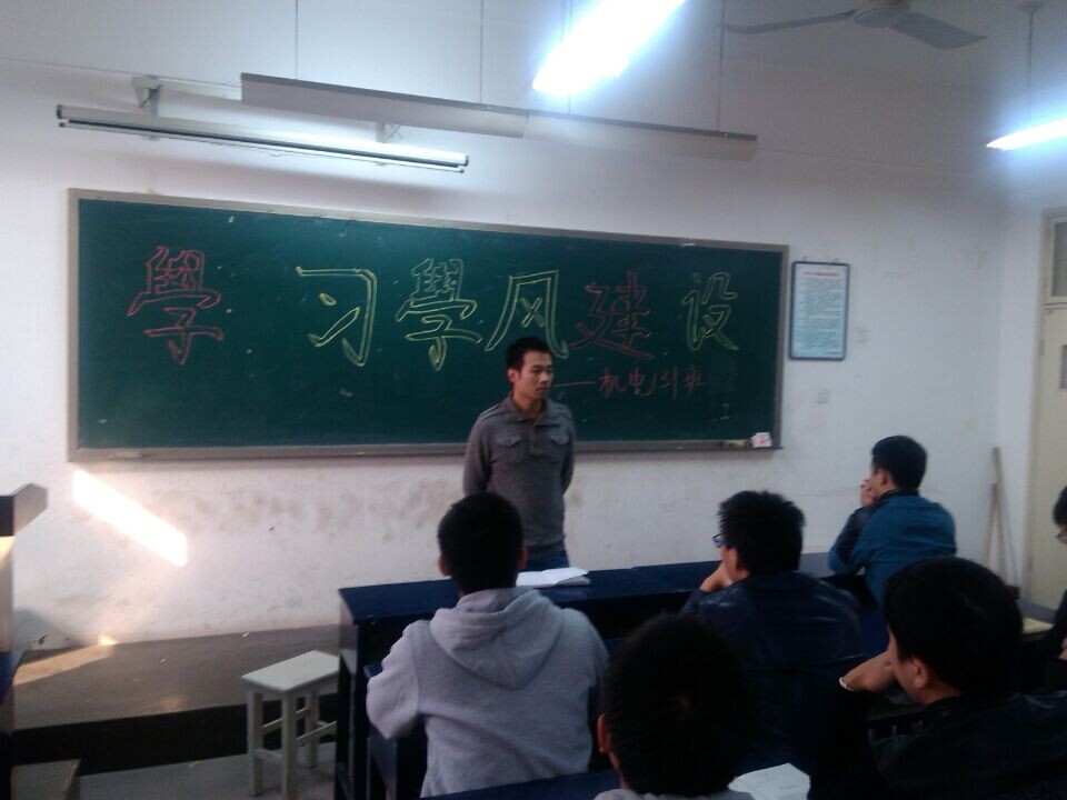 为了给同学们创造一个更加良好的学习环境,使同学们达到乐学、勤学、会学,早日形成班级长期有效的学习氛围,公司机电131班于 2014年11月6号在1号楼406室组织召开了“学风建设”主题教育班会,出席班会的有辅导员郭士锐老师和机电131全体同学。