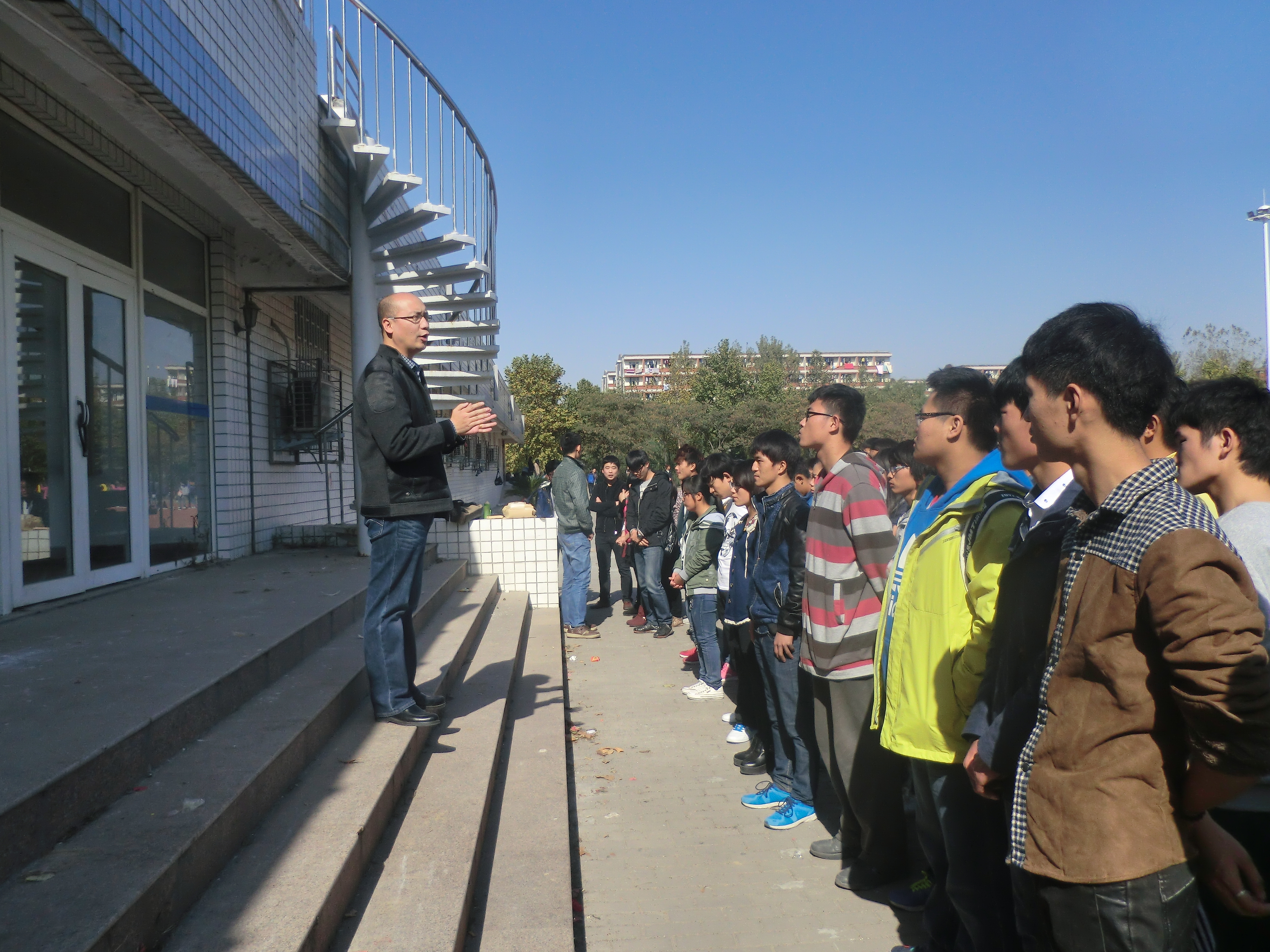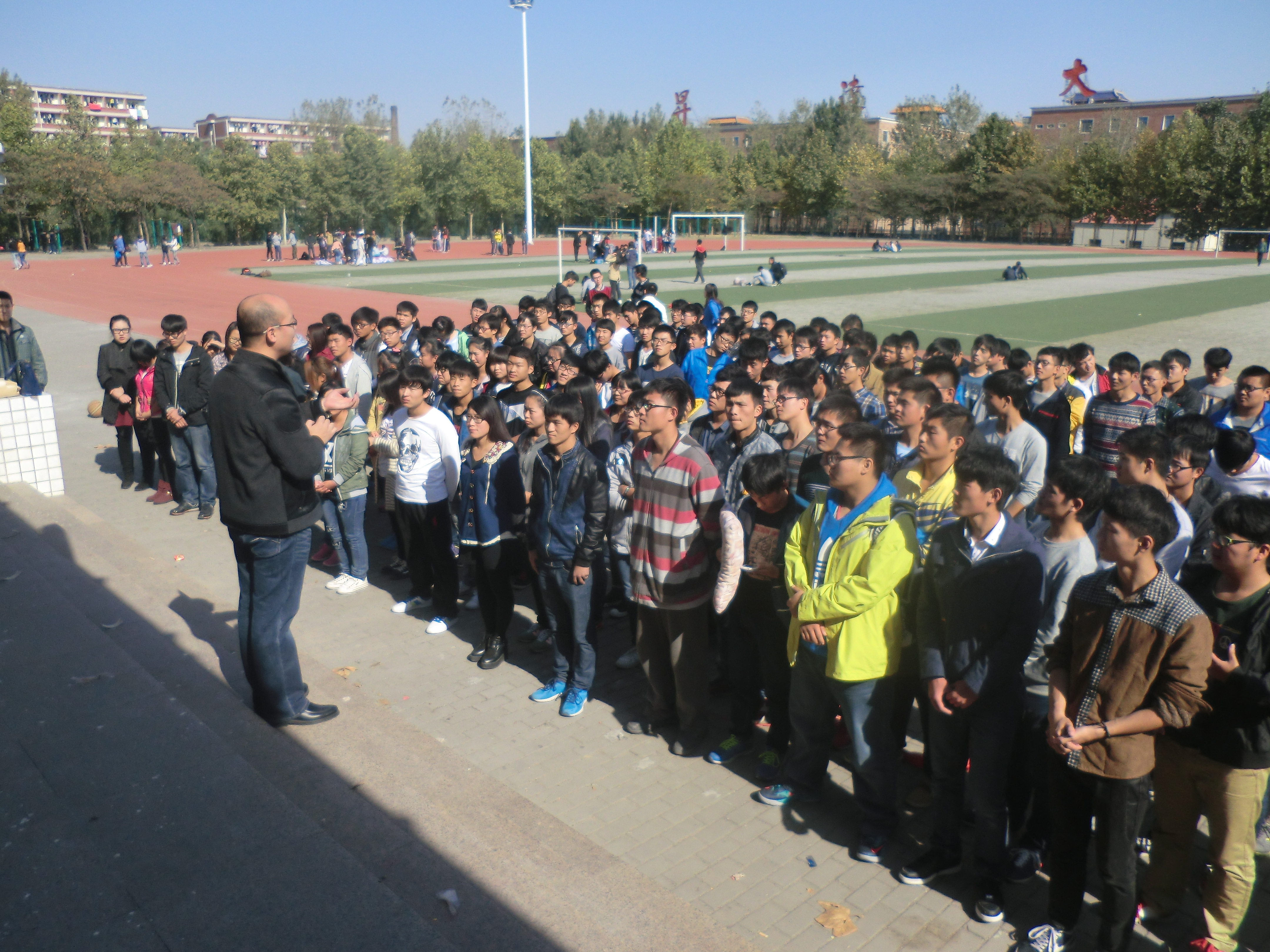 原本本次动员会定于教室进行,李副书记为了不干扰训练的进度,亲自来到北苑操场,在大家开始训练前为大家做了这次动员。
