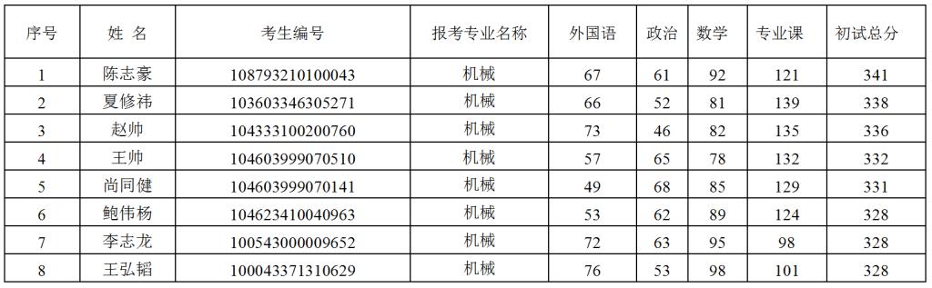 365在线体育投注官网机电公司2023年硕士研究生机械专业调剂复试名单(第四批)