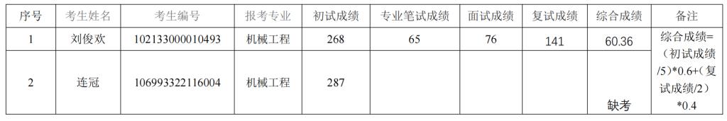按照公司招生工作安排,机电公司2023年硕士研究生复试工作(调剂第八批)于4月24日进行。根据复试情况,现将考生复试成绩公示如下: