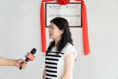 Subsequently, Dean Du and executive director Cao Chaowei held a signing ceremony for the 2.1 million yuan industry university research cooperation project on behalf of the school and enterprise. Dean Du presented the appointment letter of enterprise tutor to the executive director Cao Chaowei. Dean Du and Zhang Ronghai, the director of the Taicang High-tech Zone Science and Technology Bureau, jointly unveiled the "Innovation Training Base for Postgraduate Education". After the signing ceremony, the main leaders of Taicang High-tech Zone, the main leaders of Taicang Henan Chamber of Commerce, the main technical backbone of Jiangsu Liyuan 3D and the relevant personnel of our school had a discussion. Vice Dean Cui Lujun introduced the situation, achievements and current production, teaching and research projects of 3D laser cladding additive manufacturing research team in School of Mechatronics Engineering. Finally, Dean Du and her party visited the company's research and development center, production base and Taicang Henan Chamber of Commerce. Taicang TV station and other news media carried out follow-up reports on this.
